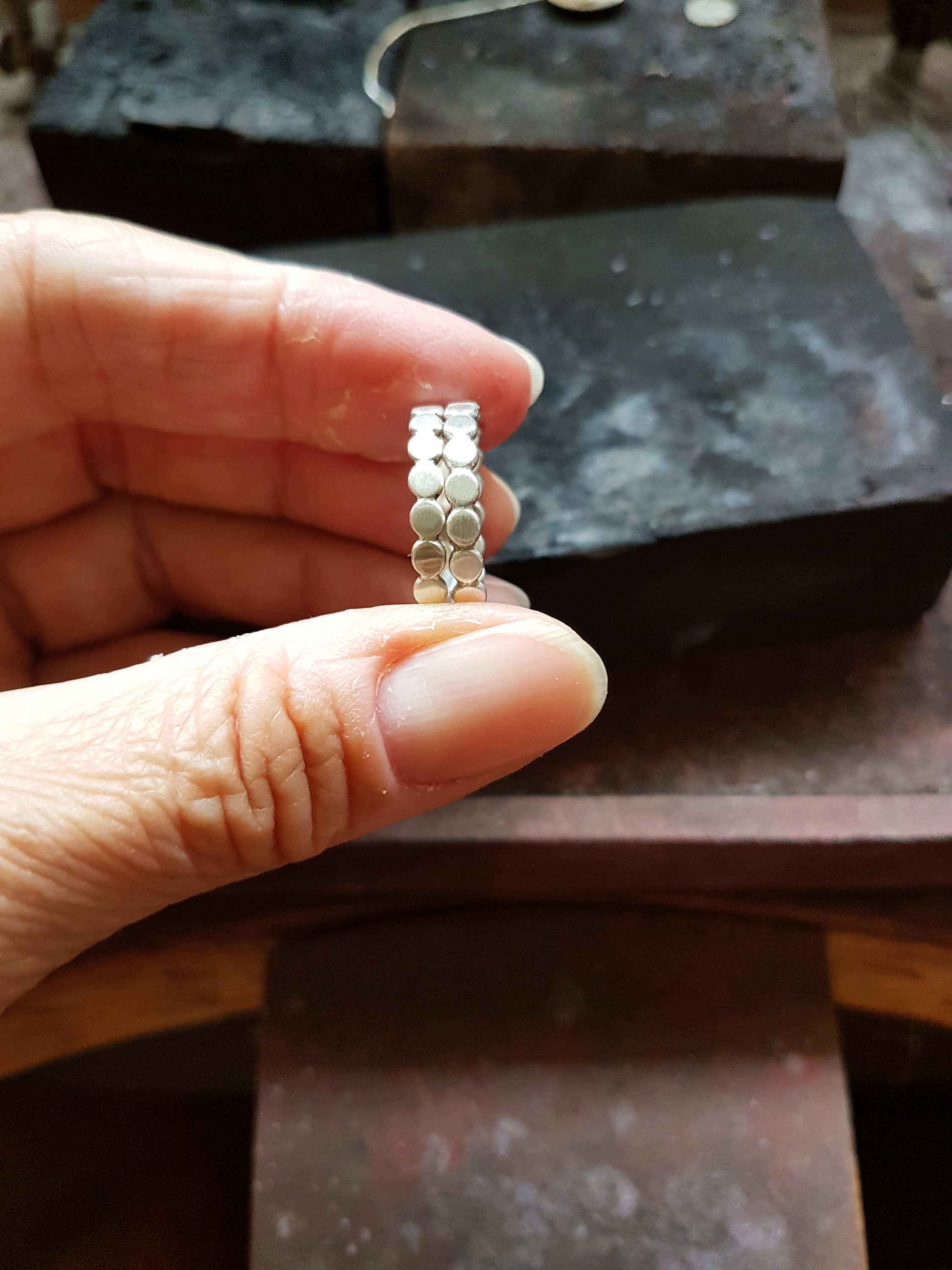 Pair of chunky beaded silver stacking rings