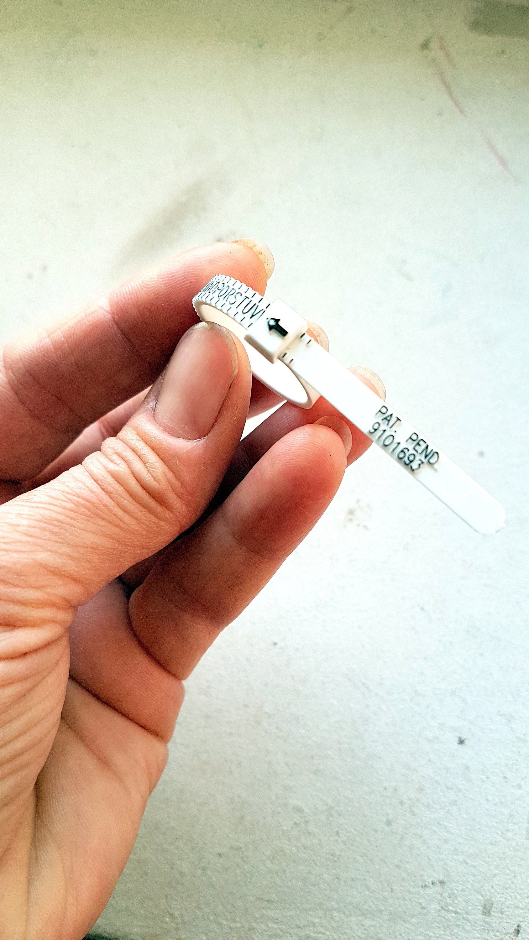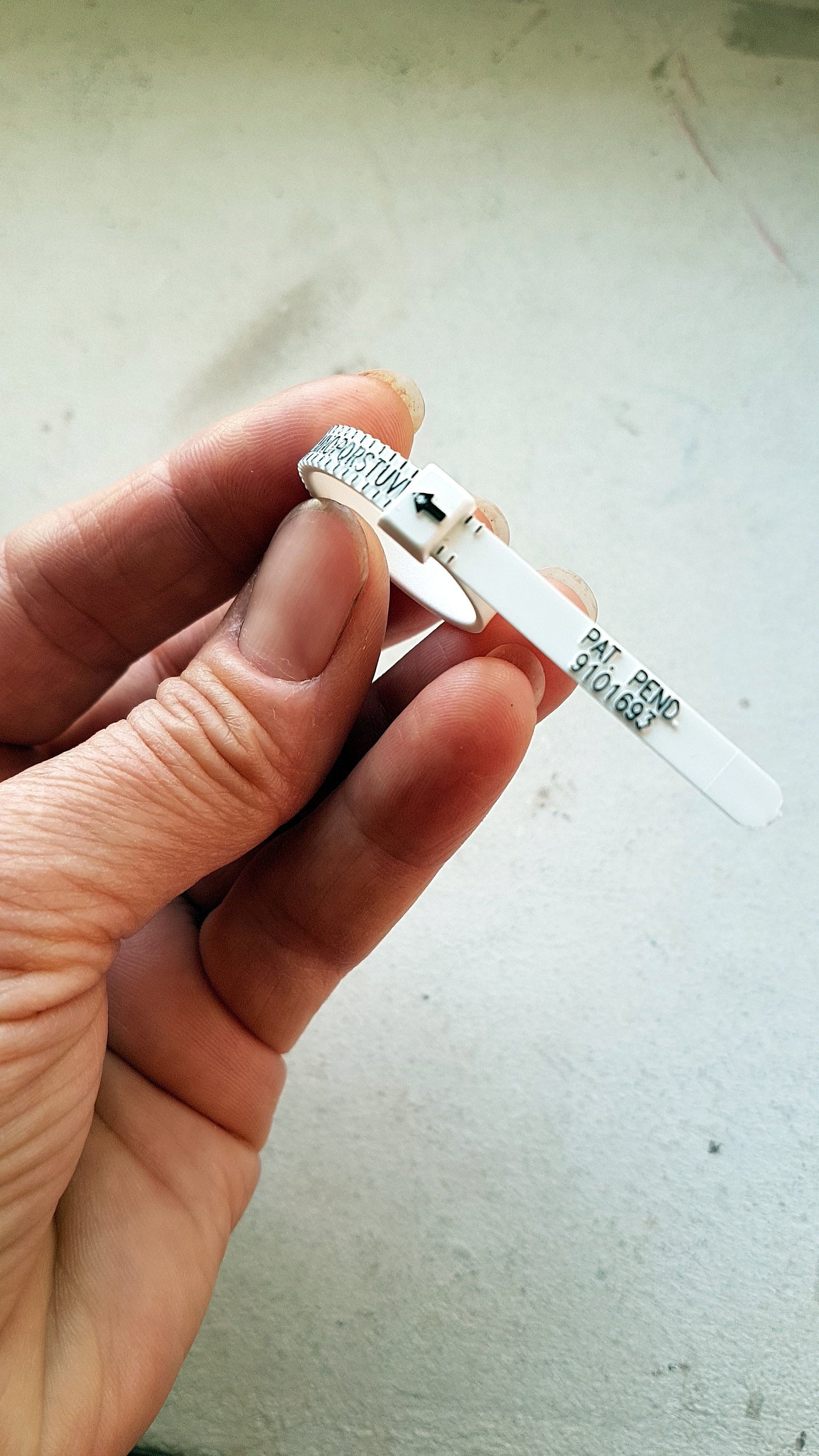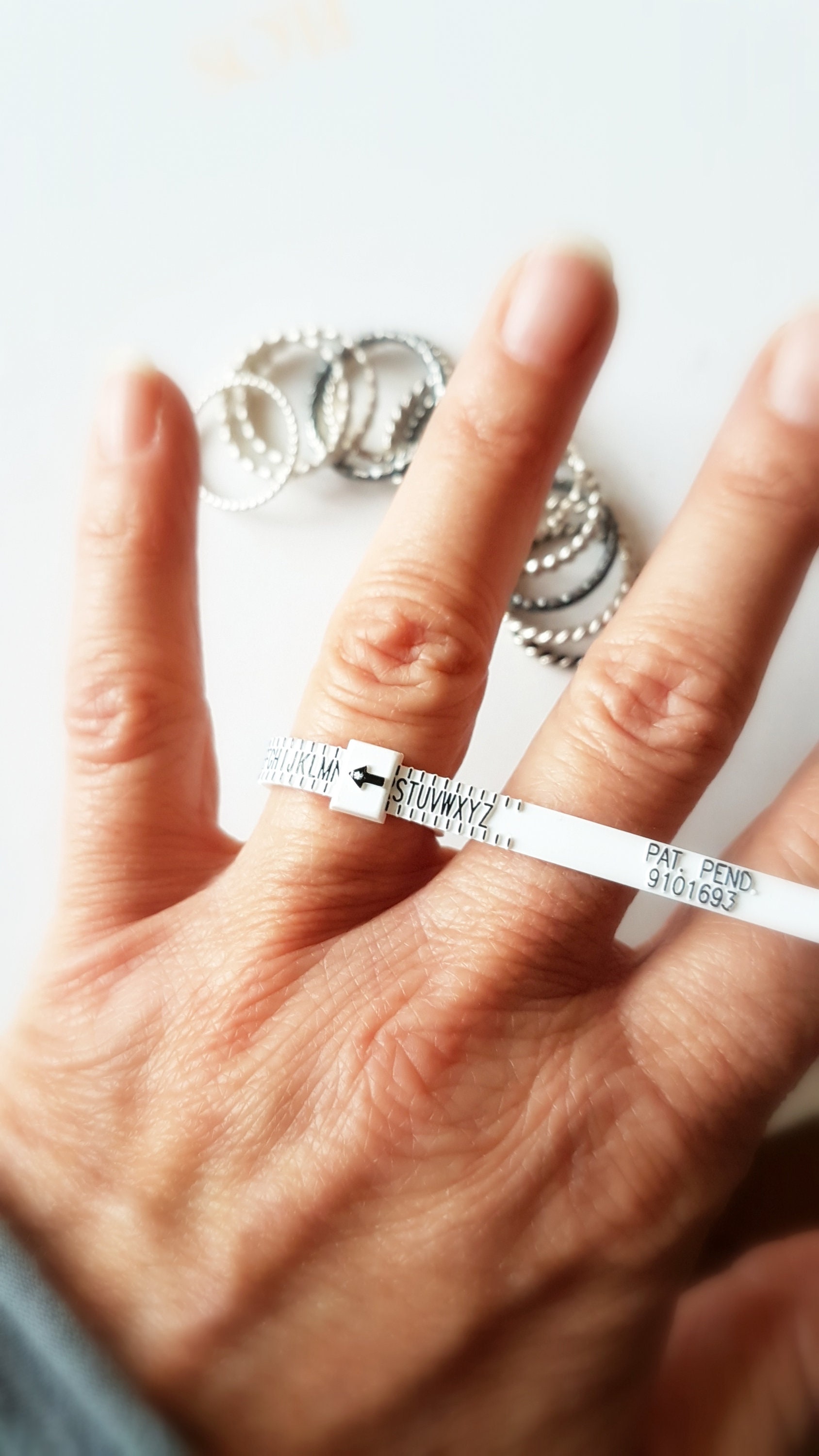This ring sizer works a bit like a belt, forming a ring and then placing over the finger.