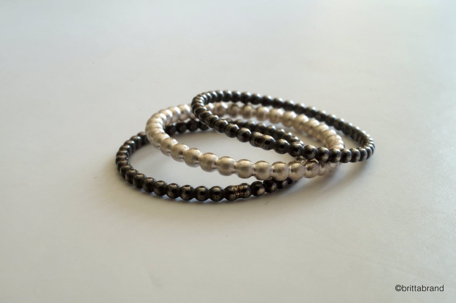 A set of three silver beaded stacking rings.